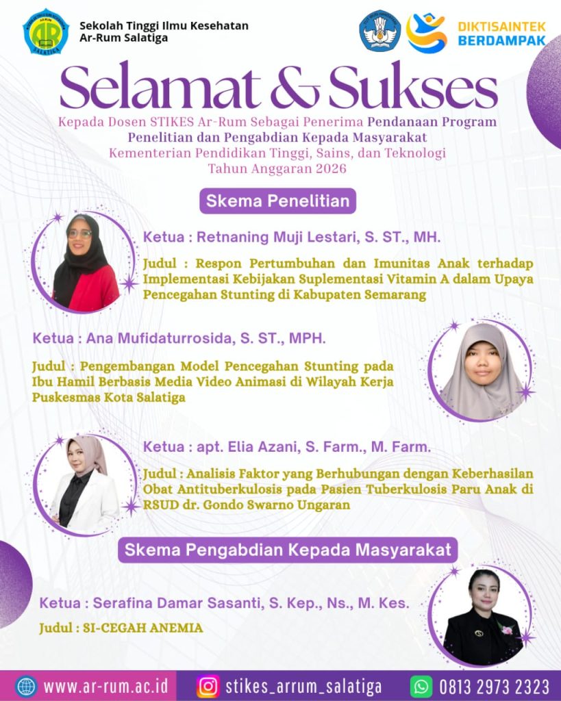 STIKES Ar-Rum adalah institusi pendidikan yang diawali dari Akademi Kebidanan Ar-Rum Salatiga. Akademi Kebidanan Ar-Rum Salatiga didirikan pada tanggal 3 Agustus 2007 berdasarkan surat keputusan pendirian nomor 132/D/O/2007 tanggal 3 agustus 2007. Dasar perubahan bentuk Akademi Kebidanan Ar-Rum Salatiga menjadi STIKES Ar-Rum ditetapkan dengan no SK 218/KPT/I/2019 tanggal 20 maret 2019. STIKES Ar-Rum merupakan salah satu Perguruan Tinggi Swasta di bidang kesehatan di bawah naungan Yayasan Ar-Rum Salatiga, yang memiliki 2 program studi yaitu D3 Kebidanan dan S1 Farmasi, dengan harapan STIKES Ar-Rum ikut berkontribusi dalam meningkatkan ketersediaan, penyebaran dan mutu sumber daya manusia di fasilitas pelayanan kesehatan.