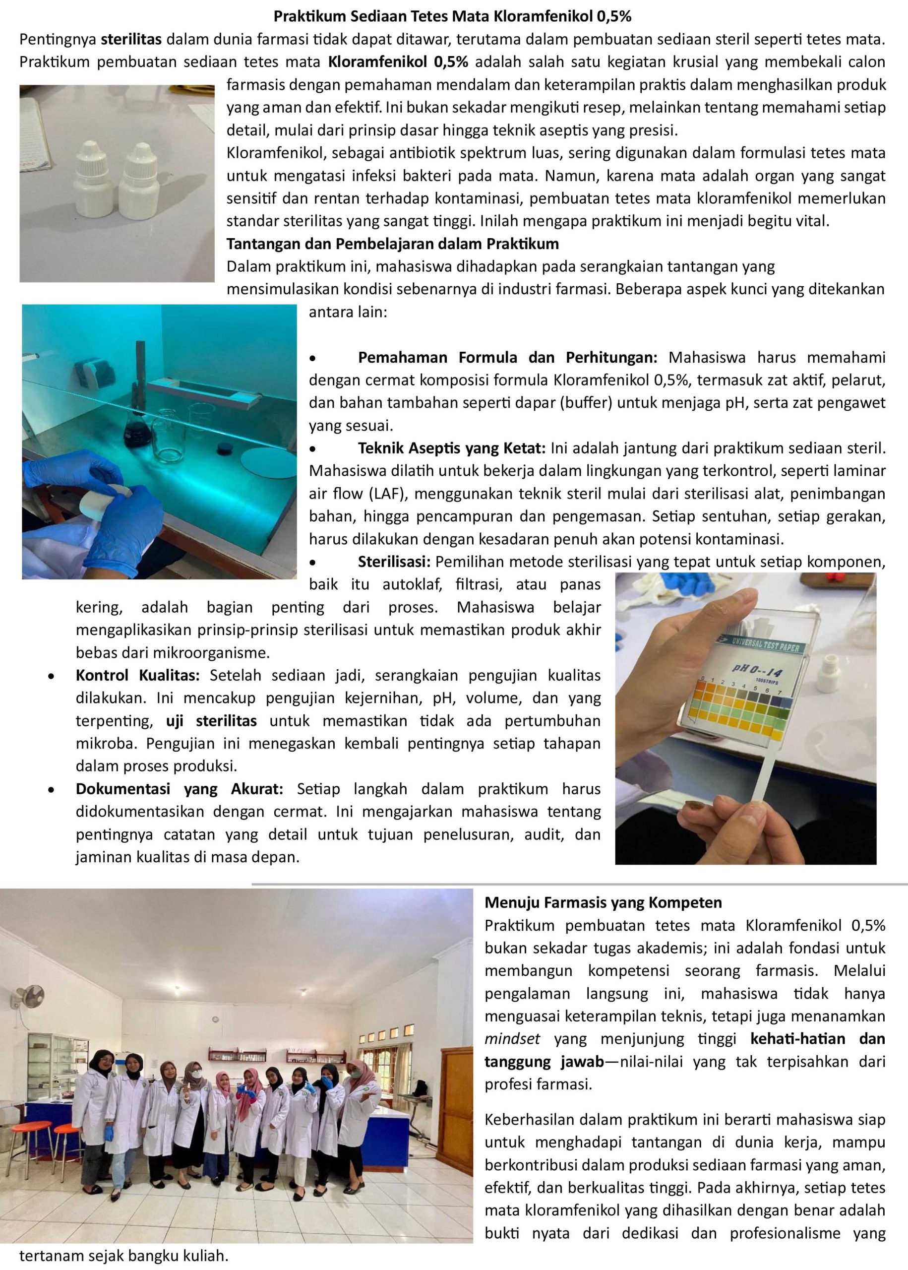Praktikum Sediaan Tetes Mata, Mahasiswa Program Studi S1 Farmasi
