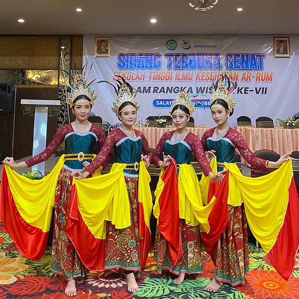Tari ini dibawakan oleh mahasiswi Prodi S1 Farmasi Semester 5 (Kirana Larasati), mahasiswi Prodi S1 Farmasi Semester 3 (Upik Sugiyarti), dan mahasiswi Prodi D3 Kebidanan semester 1 (Deby Kusuma Dewi dan Anatasya Puspita Sari). Sebelum membawakan tari ini pada acara Wisuda STIKES Ar-Rum, Tim UKM Tari STIKES Ar-Rum juga dipercaya untuk membawakan tari pembuka dalam acara Musyawarah Cabang Ke-VI Ikatan Bidan Indonesia (IBI) Kota Salatiga pada tanggal 27 September 2025 di Ruang Kaloka, Gedung Setda Kota Salatiga.